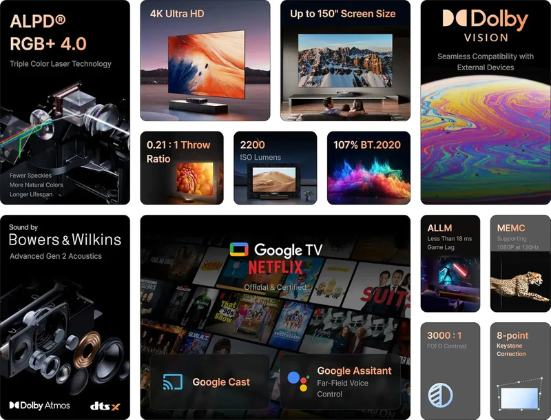 Formovie proudly partners with the renowned audio brand Bowers & Wilkins to elevate your sound experience. Expertly tuned by a professional team, the upgraded audio system of the Theater Premium offers a breathtaking cinematic soundscape that enhances every moment, preserving classic tones and delivering audio in its purest, most captivating form.